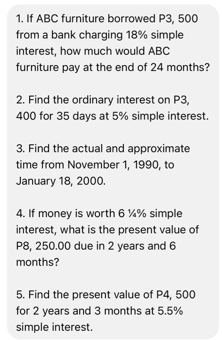Solved 1 If Abc Furniture Borrowed P3 500 From A Bank Chegg Com
